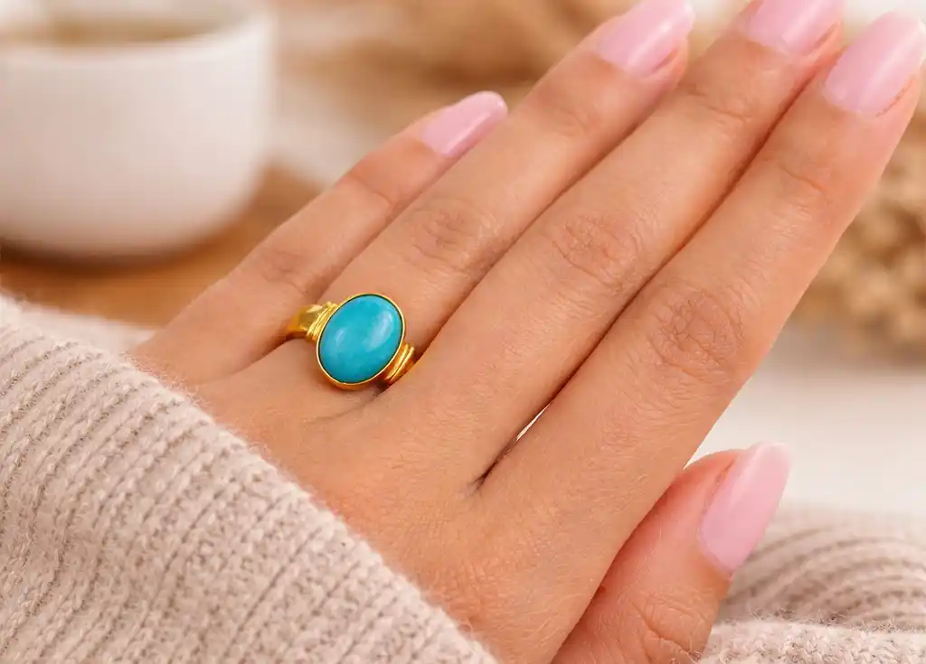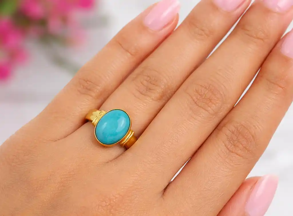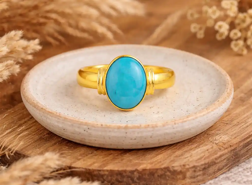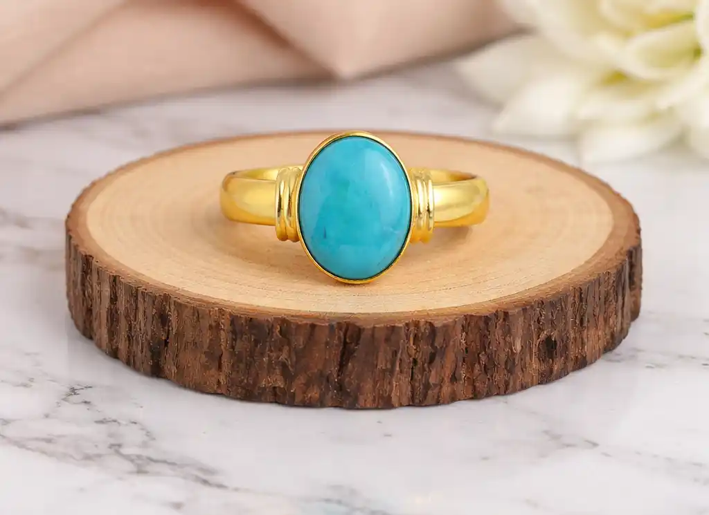 Firoza Stone Gold Adjustable Ring for Men and Women