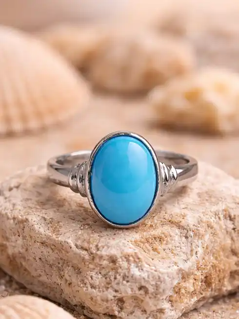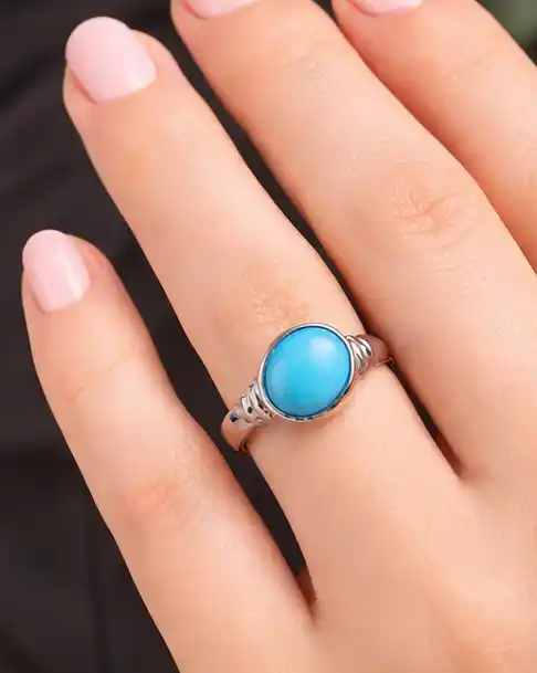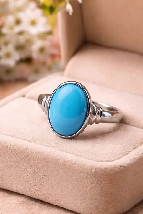 Ratti Turquoise (Firoza) Certified Firoza Gemstone Silver-Plated Adjustable Ring for Men & Women