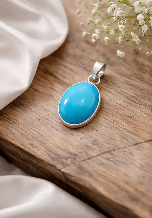 Firoza Stone | Original Turquoise Gemstone Pendant | Certified Healing Crystal Astrological Birthstone for Success, Positivity &